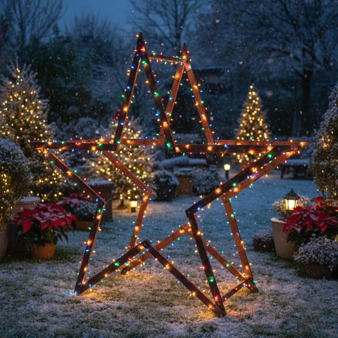 Die stabile Konstruktion mit soliden Querstreben ermöglicht es, den Stern im Wohnzimmer, am Eingang, auf der Terrasse oder im Garten zu platzieren. Ideal für alle, die einen auffälligen Mittelpunkt ihrer Weihnachtsdekoration schaffen möchten – einfach LED-Lichter oder eine Girlande hinzufügen, und jeder Raum erstrahlt in warmem, festlichem Glanz.